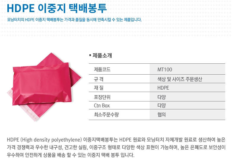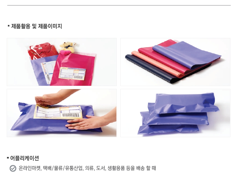 - 이중지 택배용 필름, 안전봉투용 내열성 PE필름 등 산업 전반에