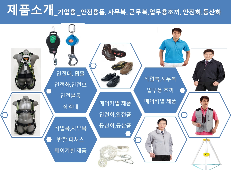 기업용 안전용품, 사무복, 근무복,업무용조끼, 안전화,등산화