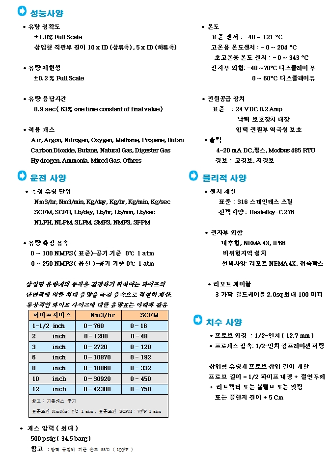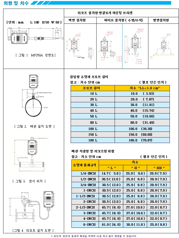 공기 및 가스측정용 내후형 컴팩트형 질량유량계