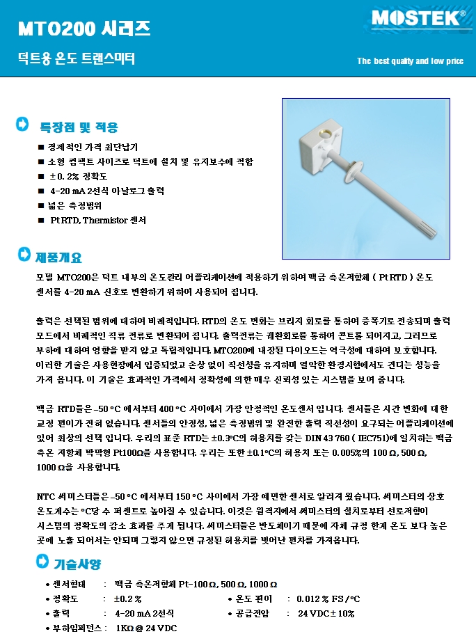 덕트용 온도전송기 ,덕트용 온도트랜스미터