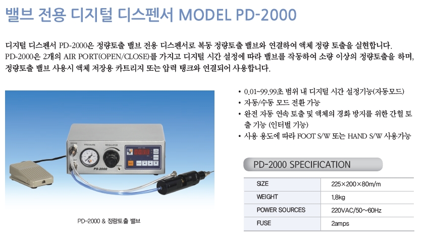디지털 디스펜서 PD-2000은 정량토출 밸브 전용 디스펜서로