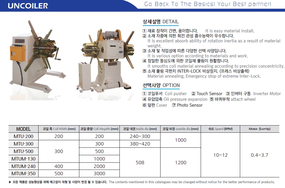 모델번호: MTU,MTUM 시리즈