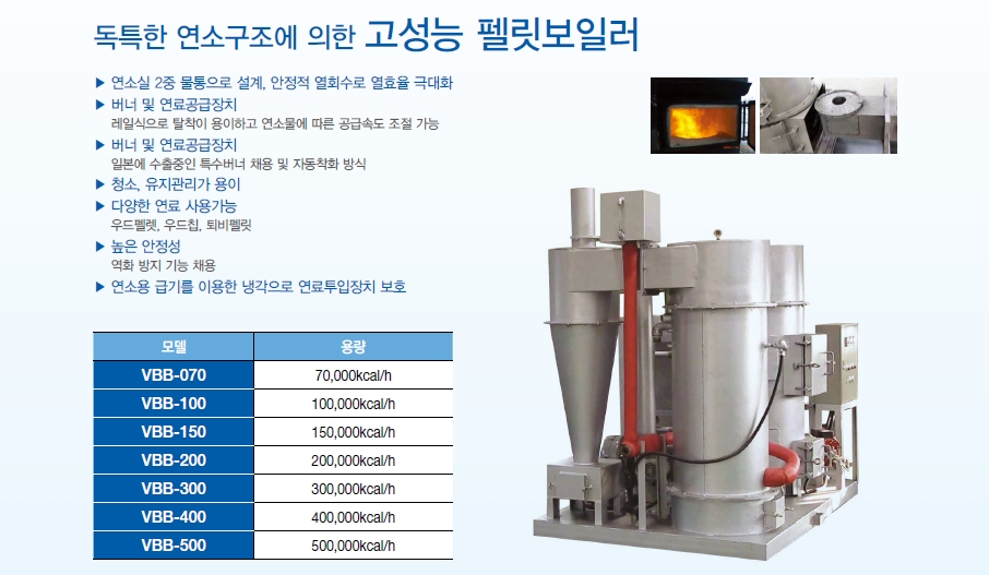 - 연소실 2중 물통으로 설계, 안정적 열회수로 열효율 극대화