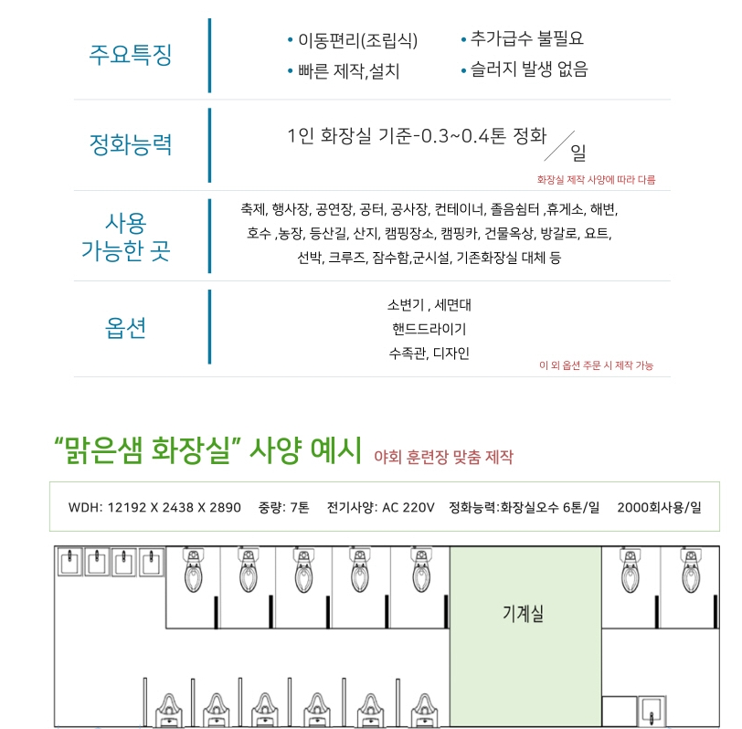 맑은샘화장실,무방류순환수세식화장실,간이화장실,이동식화장실
