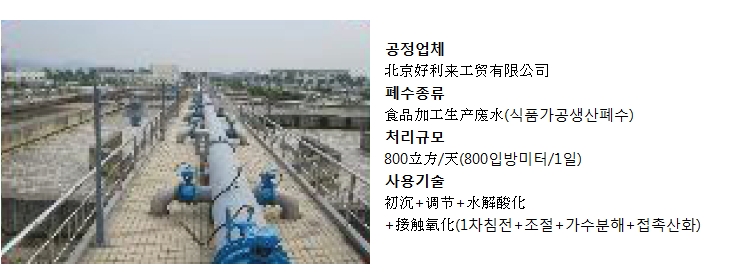 식품가공생산폐수(1차침전+조절+가수분해+접촉산화)