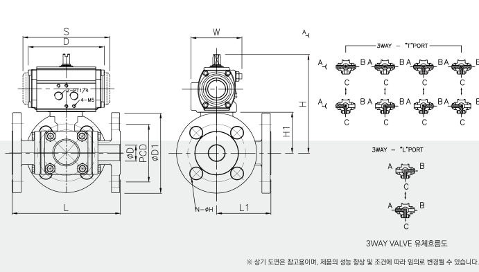 공압식볼밸브,공압밸브,공압식밸브,3way 볼밸브,Pneumatic control 3-WAY Ball valve