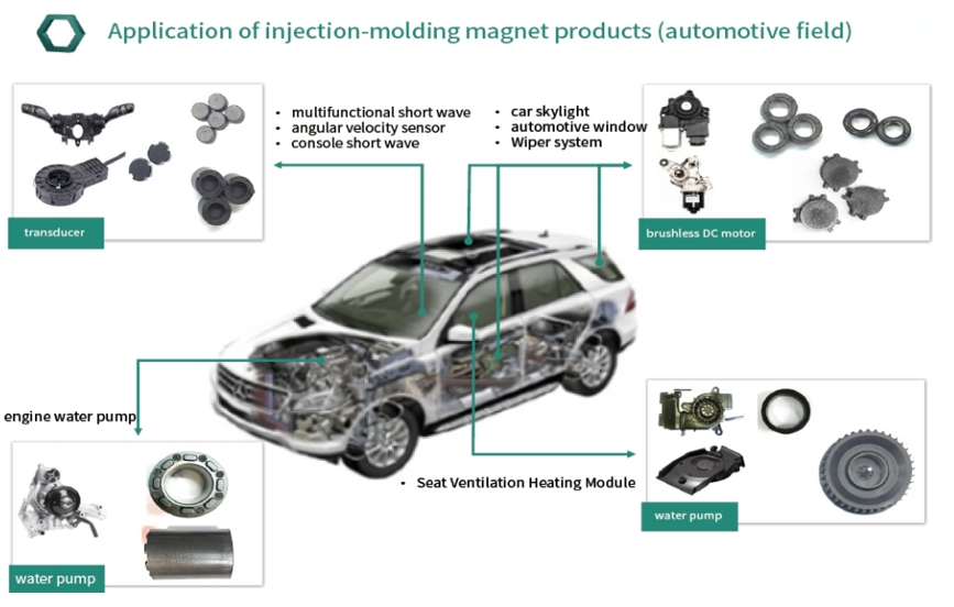 - 자석파우더와 플라스틱 유기물로 혼합하여 정밀사출로 만든 플리스틱자석