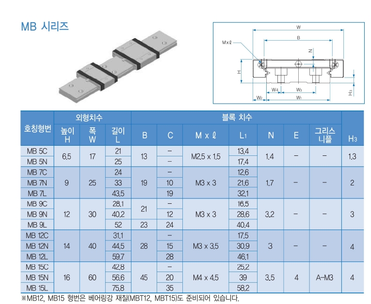 LM가이드,리니어모션가이드,linear motion guide,LM GUIDE-MB7 BLOCK(SINGLE)