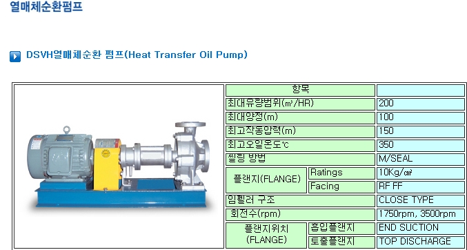 펌프,열매체순환펌프,산업용펌프,heat transfer oil pump,오일펌프