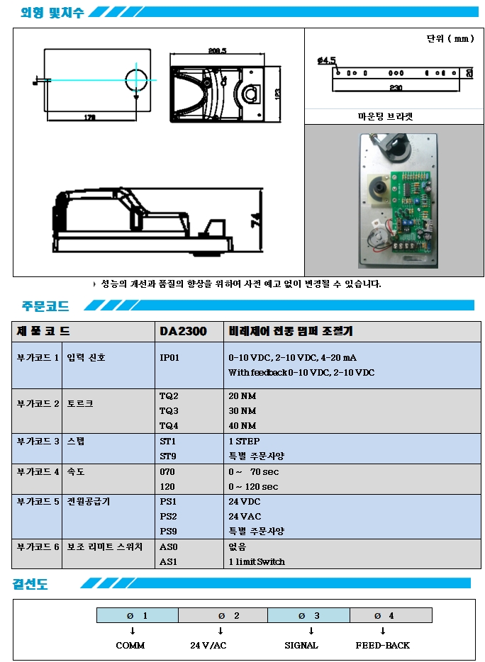 비례제어 댐퍼조절기,댐퍼용 비례제어 구동기 (Multi-Inputs & Feedback Signal)