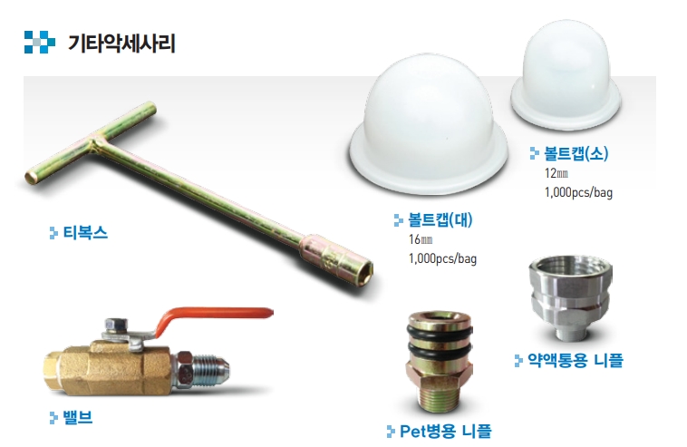 패카 악세사리(티복스,볼트캡,밸브,PET병용니플,약액통용니플)