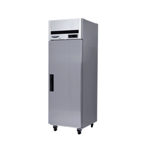 스테인리스 스틸 재질의 수직형 냉장고