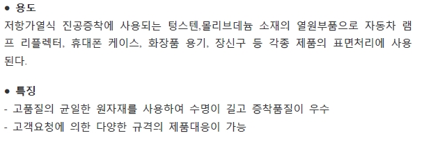 저항가열식 진공증착에 사용