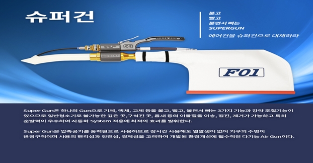 슈퍼건은 하나의 건으로 기체, 액체, 고체 등을 불고, 빨고, 불면서 빠는 세가지 기능과